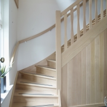 De maat van de trap meten wij ter plekke bij u op. We bespreken uw wensen en gaan in onze houtbewerkingsfabriek aan de slag. U kunt kiezen uit diverse modellen, houtsoorten, balusters en kleuren. We adviseren u graag over de verschillende opties